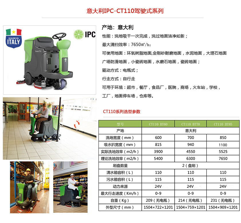 1.駕駛式洗地機(jī) CT110是集洗刷機(jī)、一體化地面清潔設(shè)備。能有效清潔地面頑油漬、污漬、輕度粉塵、臟水、土壤等。后面的弧形吸水扒可以有效吸收地面污水,洗衣機(jī)經(jīng)過的地面可以達(dá)到干燥的效果,清潔地面無殘留。