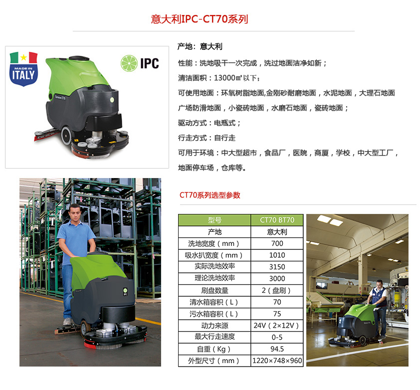 洗地機(jī)IPC CT70系列 性能特點(diǎn)IPC洗地機(jī)常用配件